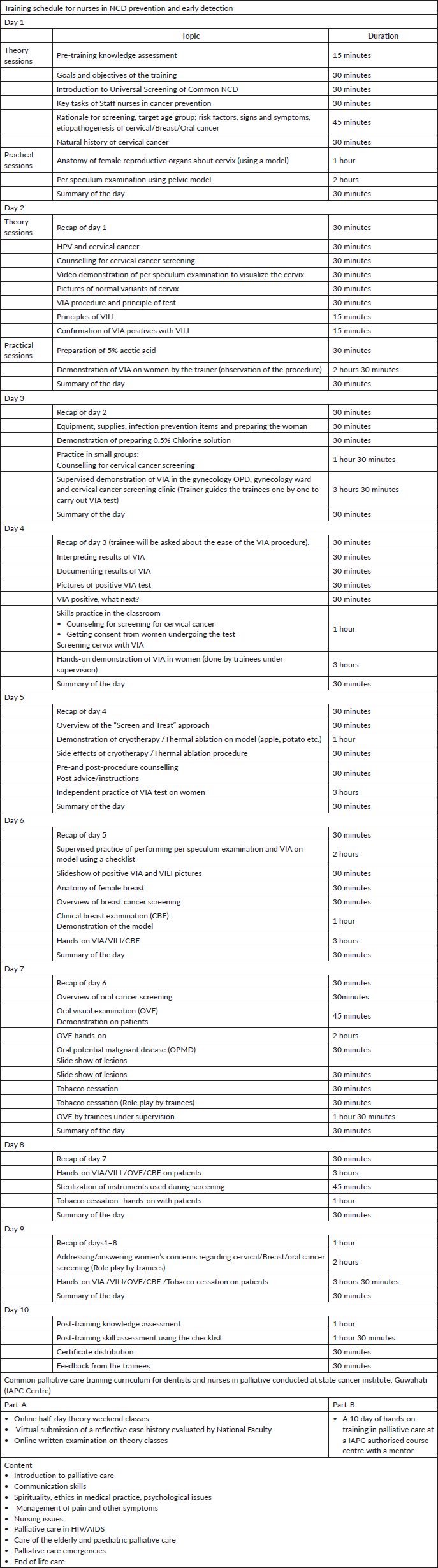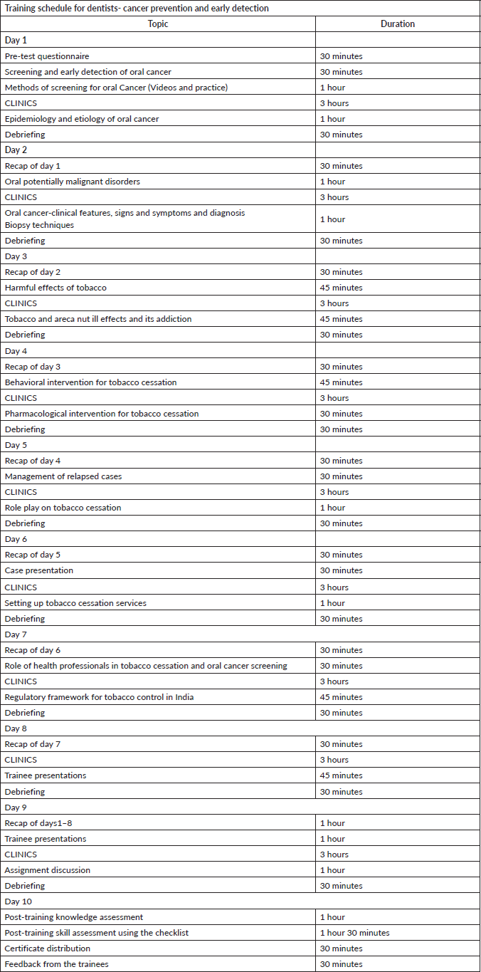 Appendix - 1. Training schedule for cancer prevention, early detection and palliative care for dentist and nurses.
