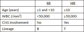 Patients were classified into HR and standard risk (SR) categories based on clinical and biological criteria according to MARALL’s classification (Table 1) at the time of diagnosis [14].