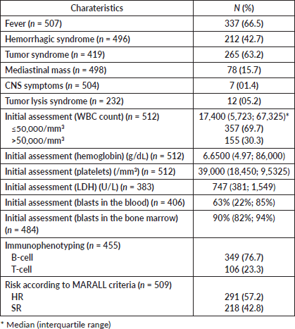 We collected 630 cases of ALL, 512 were included in the study and 118 were excluded based on eligibility criteria. The sociodemographic data of the study sample can be seen in Table 2.