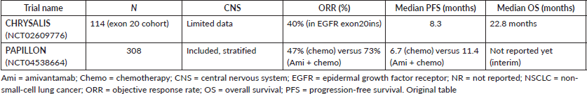PAPILLON offered strong evidence for the drug’s use in the first-line setting, helping to establish a new standard of care for patients with EGFR exon20ins-mutant NSCLC, while CHRYSALIS demonstrated the drug’s effectiveness as a second-line option [12, 23, 24]. Table 1 below summarises the Key Clinical Trials in EGFR exon20ins-Mutant NSCLC.