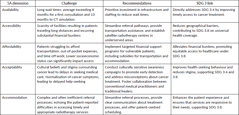 Table 3. Challenges in accessing radiotherapy services in Gauteng Province, South Africa, Mapped to the 5 A’s Framework.