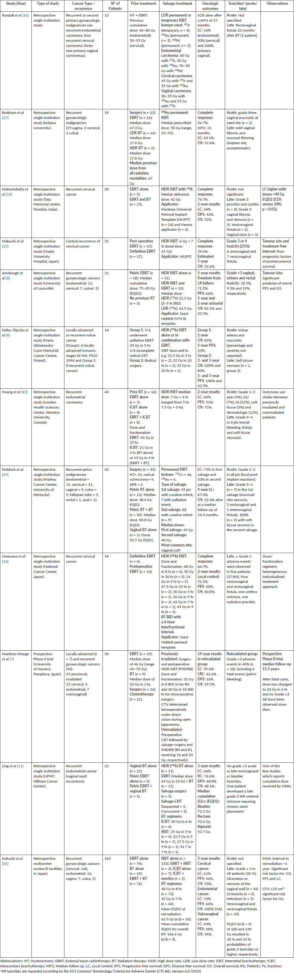 Table 2. Summary of studies on BT-based reirradiation in gynaecologic cancer.