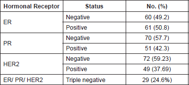 Table 2. Hormone receptor status of breast carcinoma patients.