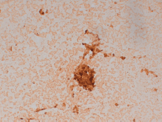 Figure 2. Lung wedge resection of patient #2 showing positive staining for PSA. Original magnification x200.