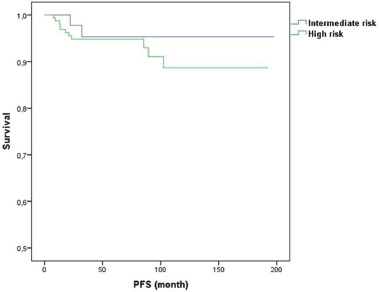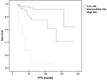 Figures 1 and 2 illustrate LRR survival for these three groups according to the prognostic index score for low, intermediate, and high risk in BCS group and mastectomy group.