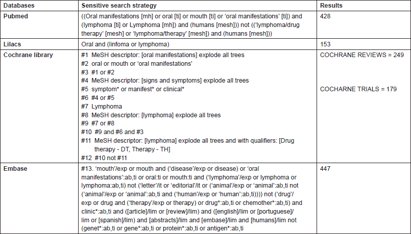 Thus, the aim of this systematic review was to identify the oral manifestations of lymphoma reported in scientific publications in order to assist health professionals in the initial diagnosis, prognosis, and treatment.