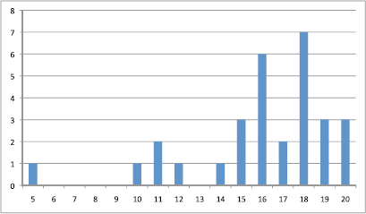 Table 2 shows the average score for each question per subscale and Figures 1, 2, and 3 show the distribution of scores per subscale of the 30 participants in the fifth stage.