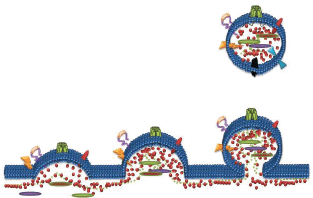 Figure 2. Formation of Microparticles (MPs): MPs are membrane vesicles released from membrane budding following loss of phospholipid asymmetry and cleavage of the underlying cytoskeleton. MPs package and transfer bioactive lipids, nucleic acids and proteins from the parental cells to recipient cells as part of cell-to-cell communication.