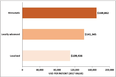 Figure 4. Average overall healthcare cost of GC by tumour stage for ≥65-year-old patients in the US. Source: Yabroff 2008 [36].