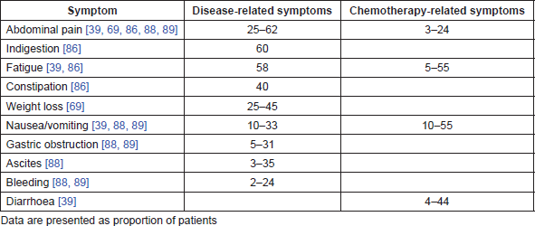 Table 1. Common symptoms associated with advanced GC and chemotherapy.