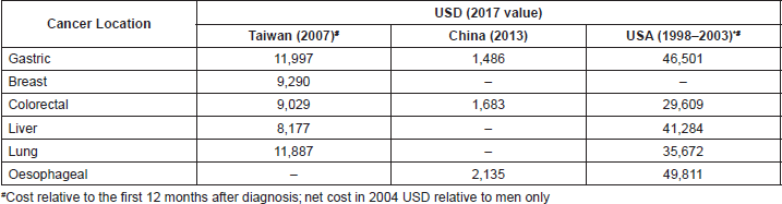 Table 2. Total annual healthcare cost of GC per patient for different cancers in different regions.