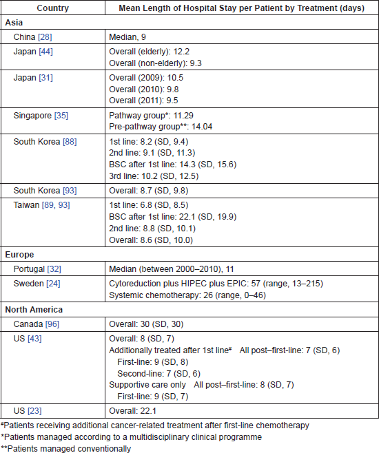Several studies examined health resource utilisation. Length of hospital stay in different countries is summarised in Table 4.