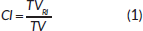where TVRI is the target volume encompassed by the prescription isodose, TV is the target volume and VRI is the volume encompassed by the prescription isodose; all volumes are expressed in cm3.